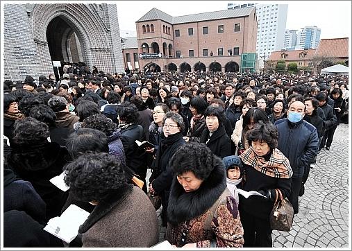±è¼öȯ Ãß±â°æÀÇ ¼±Á¾ ³ªÈê°ÀÎ 19ÀÏ ¿ÀÀü ½Ã½ÅÀÌ ¾ÈÄ¡µÈ ¼¿ï Áß±¸ ¸íµ¿¼º´ç¿¡ Á¶¹®À» ¿Â ½ÅÀÚµéÀÌ ¿¬µµÇϰí ÀÖ´Ù. |
