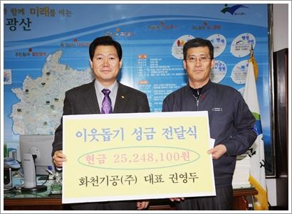 ±¤ÁÖÀü³²ÇÁ¶ó½ºÆ½°ø¾÷Çùµ¿Á¶ÇÕ(ÀÌ»ç ÃÖºÀ±Ô)Àº 30ÀÏ ±¤ÁÖ ±¤»ê±¸Ã»¿¡¼ ºÏÇÑÀÌÅ»ÁÖ¹Î(»õÅ͹Î) µ½±â ¼º±Ý 2¹é¸¸¿øÀ» Àü°©±æ ±¤»ê±¸Ã»Àå¿¡°Ô Àü´ÞÇß´Ù.