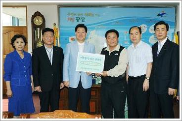 Àü°©±æ ±¤»ê±¸Ã»ÀåÀº 11ÀÏ ¿ÀÀü 10½Ã ±¸Ã»Àå½Ç¿¡¼ ½Å¼º¼ö ³óÇùÁß¾Óȸ±¤ÁÖº»ºÎÀå µî 5¸íÀÌ Âü¼®ÇÑ °¡¿îµ¥ Á¶ÇÕ¿øµéÀÌ ¸ð±ÝÇÑ ¼º±ÝÀ¸·Î ±¸ÀÔÇÑ »ç¶ûÀÇ ½Ò Àü´Þ½ÄÀ» °¡Á³´Ù. |