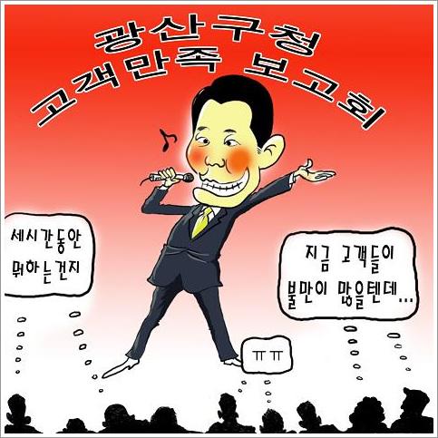 ±¤»ê±¸°¡ °í°´(±¸¹Î)¸¸Á· ½ÇÇöÀ» À§ÇÑ´Ù¸ç °³ÃÖÇÑ ÇàÁ¤Çõ½Å º¸°íȸ¿¡ ¾÷¹«½Ã°£ Áß º»Ã» ´ëºÎºÐÀÇ °ø¹«¿øµéÀ» µ¿¿ø, 3~4½Ã°£µ¿¾È ÇàÁ¤°ø¹éÀ» ÃÊ·¡ÇØ ±¸¹ÎµéÀÇ ºñ³À» »ç°í ÀÖ´Ù.