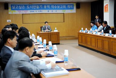 1ÀÏ ±¤»ê±¸´Â ¿ÀÈÄ 2½Ã û»ç 2Ãþ »óȲ½Ç¿¡¼ Àü°©±æ ±¤»ê±¸Ã»Àå, ÁֹΠ´ëÇ¥, ±¸ÀÇ¿ø µî 30¿©¸íÀÌ Âü¼®ÇÑ °¡¿îµ¥ º¸°íȸ¸¦ °³ÃÖÇß´Ù.¡¦ |
