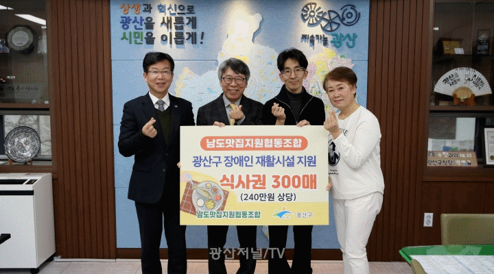 [±¤»êÀú³Î] ³²µµ¸ÀÁýÁö¿øÇùµ¿Á¶ÇÕ(ÀÌ»çÀå Á¤¹ÎÈ£)°¡ Áö³­ 9ÀÏ ±¤»ê±¸ Àå¾ÖÀÎÀ» À§ÇØ ÇÑ½ÄºßÆä ½Ä»ç±Ç 300¸Å¸¦ ÈÄ¿øÇß´Ù. ³²µµ¸ÀÁýÁö¿øÇùµ¿Á¶ÇÕÀº ±¤»ê±¸ Çб³±Þ½Ä ½ÄÀç·á¸¦ °ø±ÞÇÏ´Â ¾÷ü·Î, ¼öÀÍ »çȸÀû ȯ¿ø°ú Áö¿ª Àå¾ÖÀÎÀÇ »çȸ Ȱ¡¦