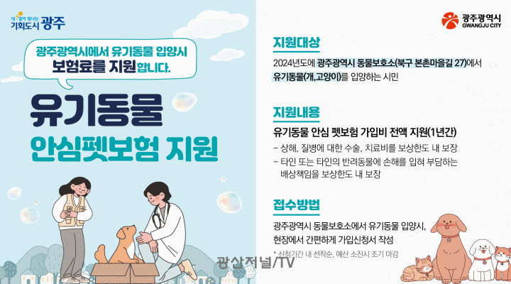 [Á¾ÇÕ] ±¤ÁÖ½Ã, µ¿¹°º¸È£¼Ò¼­ ÀÔ¾çÇÏ¸é Æêº¸Çè Áö¿ø |2024. 01.10