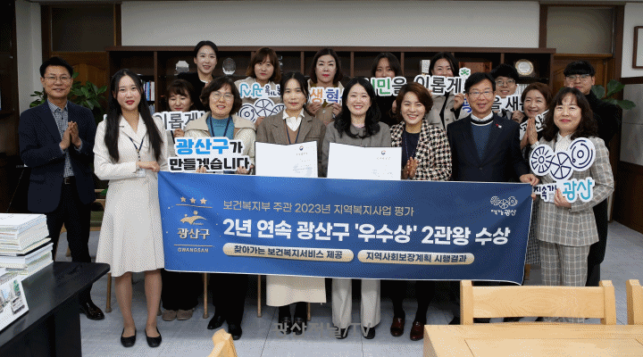 [±¤»êÀú³Î] ±¤ÁÖ ±¤»ê±¸(±¸Ã»Àå ¹Úº´±Ô)°¡ º¸°Çº¹ÁöºÎ ÁÖ°ü 2023³â Áö¿ªº¹Áö»ç¾÷ Æò°¡ 2°³ ºÐ¾ß¿¡¼ ¡®¿ì¼ö»ó¡¯À» ¼ö»óÇß´Ù.