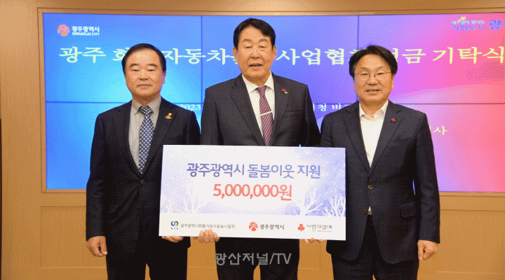 [±¤»êÀú³Î] ±¤ÁÖ±¤¿ª½Ã(½ÃÀå °­±âÁ¤)´Â 28ÀÏ ±¤ÁÖ½ÃÈ­¹°ÀÚµ¿Â÷¿î¼Û»ç¾÷Çùȸ ȸ¿øµéÀÌ ¼º±Ý 500¸¸¿øÀ» ±âŹÇß´Ù°í ¹àÇû´Ù. À̳¯ ½Ãû ºñÁî´Ï½º·ë¿¡¼­ ¿­¸° ±âŹ½Ä¿¡´Â °­±âÁ¤ ½ÃÀåÀ» ºñ·ÔÇØ ±¤ÁÖÈ­¹°ÀÚµ¿Â÷¿î¼Û»ç¾÷Çùȸ ÃÖ¹«Áø ȸÀå°ú¡¦
