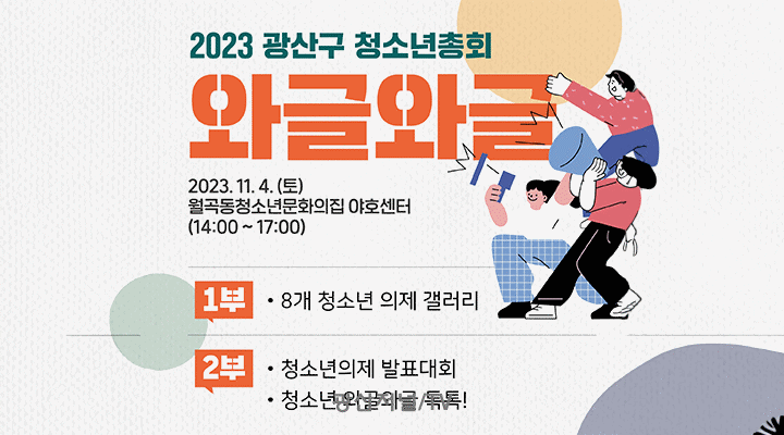 [±¤»êÀú³Î] ±¤ÁÖ ±¤»ê±¸(±¸Ã»Àå ¹Úº´±Ô)´Â 4ÀÏ ¿ù°îµ¿ û¼Ò³â¹®ÈÀÇÁý(¾ßÈ£¼¾ÅÍ)¿¡¼ 2023³â ±¤»ê±¸ û¼Ò³âÃÑȸ ¡®¿Í±Û¿Í±Û'À» °³ÃÖÇÑ´Ù°í ¹àÇû´Ù.