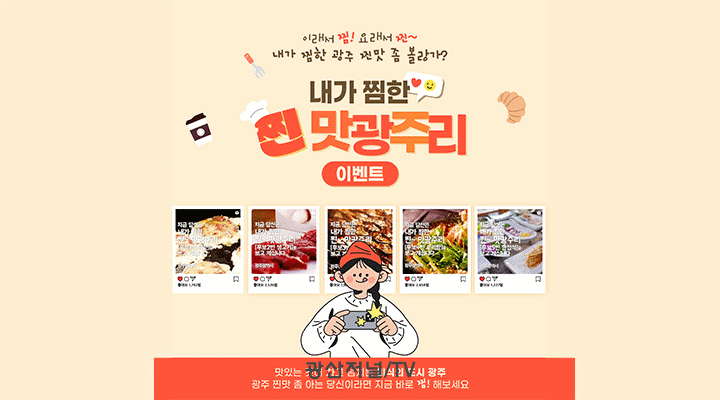 [±¤»êÀú³Î] ¡°¹Ì½ÄÀÇ µµ½Ã ±¤ÁÖ¸¦ ´ëÇ¥ÇÏ´Â ÃÖ°íÀÇ ¸ÀÀ» °ñ¶óÁÖ¼¼¿ä.¡± ±¤ÁÖ±¤¿ª½Ã(½ÃÀå °­±âÁ¤)´Â ±¤ÁÖ ´ëÇ¥ À½½ÄÀ» °í¸£´Â ¡®³»°¡ ÂòÇÑ Âð~ ¸À±¤ÁÖ¸®¡¯ À̺¥Æ®¸¦ 27ÀϺÎÅÍ 11¿ù 5ÀϱîÁö 10Àϰ£ ±¤Áֽà »çȸ°ü°è¸Á¼­ºñ½º(ÀνºÅ¸±×·¥¡¦