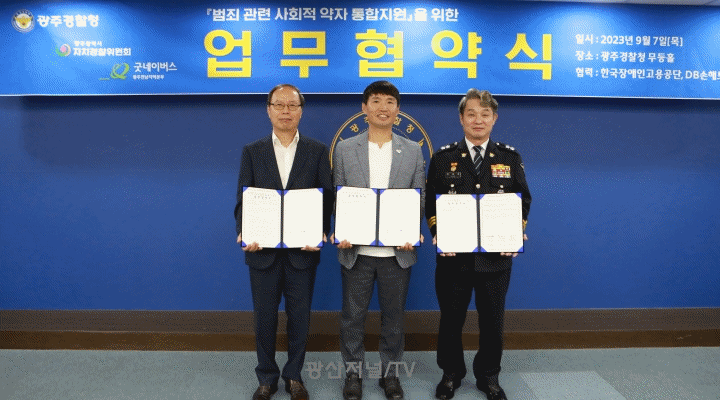 [±¤»êÀú³Î] ±Â³×À̹ö½º ±¤ÁÖÀü³²Áö¿ªº»ºÎ´Â 9¿ù 7ÀÏ (¸ñ) ±¤ÁÖ°æÂûû ¹«µîȦ¿¡¼ ±¤ÁÖ°æÂûû, ±¤ÁÖÀÚÄ¡°æÂûÀ§¿øÈ¸¿Í ¹üÁË °ü·Ã »çȸÀû ¾àÀÚ ¡®Èñ¸ÁÆ·¿ò ÅëÇÕÁö¿ø´Ü¡¯ ¾÷¹«Çù¾àÀ» ü°áÇß´Ù.