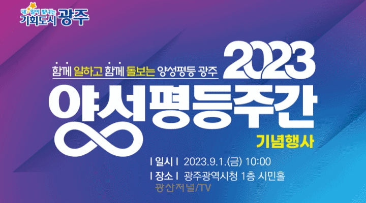 [±¤»êÀú³Î] ±¤ÁÖ±¤¿ª½Ã(½ÃÀå °±âÁ¤)´Â ¾ç¼ºÆòµîÁÖ°£(9¿ù 1~7ÀÏ)À» ¸Â¾Æ 9¿ù 1ÀÏ ½Ãû 1Ãþ ½Ã¹ÎȦ¿¡¼ ¡®2023³â ¾ç¼ºÆòµîÁÖ°£ ±â³äÇà»ç¡¯¸¦ °³ÃÖÇÑ´Ù.