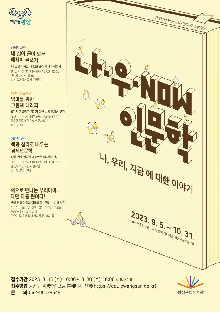 [±¤»êÀú³Î] ±¤ÁÖ ±¤»ê±¸(±¸Ã»Àå ¹Úº´±Ô)°¡ Àι®µµ½Ã±â¹Ý±¸ÃàÁö¿ø»ç¾÷¿¡ µû¶ó 9~10¿ù 4°³ ±¸¸³µµ¼°ü¿¡¼ ¿î¿µÇÏ´Â ¡®³ª.¿ì.NOW Àι®ÇС¯ÀÇ Âü¿©ÀÚ¸¦ ¸ðÁýÇÑ´Ù.