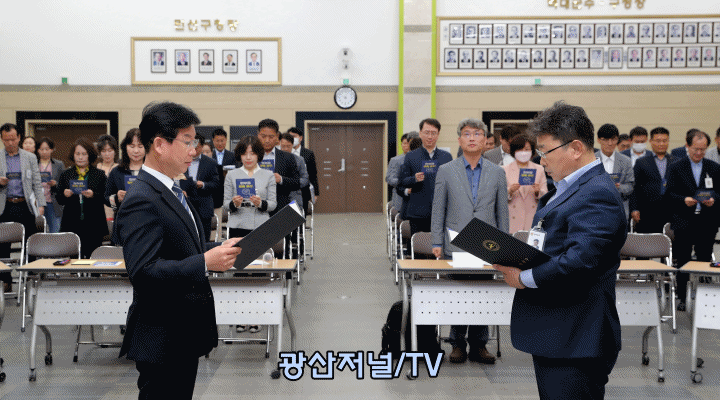 [±¤»êÀú³Î] ±¤ÁÖ ±¤»ê±¸(±¸Ã»Àå ¹Úº´±Ô)´Â 27ÀÏ ±¸Ã» 7Ãþ À±»ó¿øÈ¦¿¡¼­ ¹Úº´±Ô ±¤»ê±¸Ã»ÀåÀ» ºñ·ÔÇÑ 5±Þ ÀÌ»ó °£ºÎ°ø¹«¿ø 70¿© ¸íÀÌ Âü¼®ÇÑ °¡¿îµ¥ ¡®¹ÝºÎÆÐ û·Å½Çõ °áÀÇ´ëȸ ¹× û·Å±³À°¡¯À» ½Ç½ÃÇß´Ù°í ¹àÇû´Ù. û·Å½Çõ °áÀÇ´ëȸ¡¦