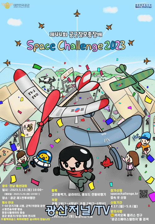 [±¤»êÀú³Î] °ø±º Á¦1ÀüÅõºñÇà´Ü(ÀÌÇÏ ¡®1Àüºñ¡¯)Àº 5¿ù 13ÀÏ(Åä)(¾Ç±â»ó ½Ã ¿¹ºñÀÏ 5¿ù 20ÀÏ) ºÎ´ë ³» ȰÁַο¡¼ Á¦44ȸ °ø±ºÂü¸ðÃÑÀå¹è Space Challenge 2023 ±¤ÁÖ¡¤Àü³²Áö¿ª ¿¹¼±´ëȸ¸¦ °³ÃÖÇÑ´Ù.
