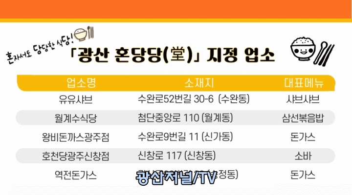 [±¤»êÀú³Î] ±¤ÁÖ ±¤»ê±¸(±¸Ã»Àå ¹Úº´±Ô)´Â Æí¾ÈÇÑ 1ÀÎ ½Ä»ç°¡ °¡´ÉÇÑ ¡®±¤»ê È¥´ç´ç(È¥ÀÚ¼µµ ´ç´çÇÑ ½Ä´ç) 20°÷À» ÁöÁ¤Çß´Ù°í ¹àÇû´Ù.
