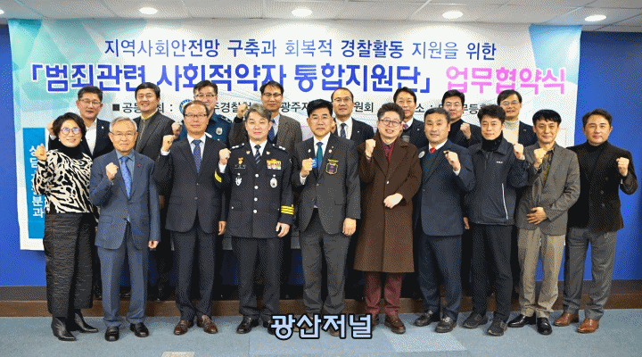 [±¤»êÀú³Î] ±¤ÁÖÀÚÄ¡°æÂûÀ§¿øÈ¸(ÀÌÇÏ ÀÚ°æÀ§)¿Í ±¤ÁÖ°æÂûûÀº ¹üÁË ÇÇÇØÀÚ µî ¹üÁË °ü·Ã »çȸÀû ¾àÀÚ Áö¿ø ÅëÇÕ ¿¬°è¸Á ±¸ÃàÀ» À§ÇØ Áö¿ª ¹Î°ü À¯°ü±â°ü°ú ¼ÕÀ» Àâ¾Ò´Ù.