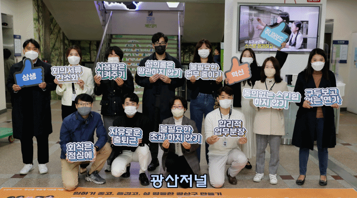 [±¤»êÀú³Î] ±¤ÁÖ ±¤»ê±¸(±¸Ã»Àå ¹Úº´±Ô)°¡ 12ÀÏ Á÷¿øµéÀ» ´ë»óÀ¸·Î Á¶Á÷¹®È ½Çõ ¼öÄ¢ È«º¸ Ä·ÆäÀÎÀ» ÁøÇàÇß´Ù°í ¹àÇû´Ù.