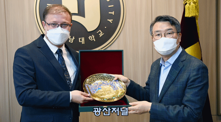 [±¤»êÀú³Î] ÁÖÇÑ¿ìÁ´ë»ç°ü ÇÏÀÌ´Ù¸£ ÆÄÀÌÁö¿¹ºê(Khaydar Fayziyev) ¿µ»ç°¡ 9¿ù 26ÀÏ È£³²´ëÇб³¸¦ ¹æ¹®ÇØ ¹Ú»óö ÃÑÀåÀ» ¿¹¹æÇϰí ȯ´ãÇß´Ù.