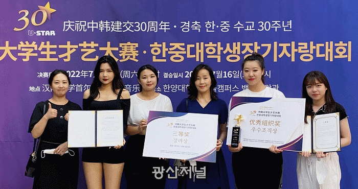 [±¤»êÀú³Î] È£³²´ëÇб³(ÃÑÀå ¹Ú»óö) JHL ´í½ºÆÀÀÌ ÁÖÇÑÁß±¹´ë»ç°ü°ú Çѱ¹´ëÇб¹Á¦±³·ùÇùÀÇȸ(KAFSA)°¡ °øµ¿À¸·Î ÁÖÃÖÇÑ ÇÑ¡¤Áß´ëÇлýÀå±âÀÚ¶û´ëȸ ¡®U-Star30¡¯ °á½ÂÀü¿¡¼ Àå·Á»ó°ú ¿ì¼ö Á¶Á÷»óÀ» ¼ö»óÇß´Ù.