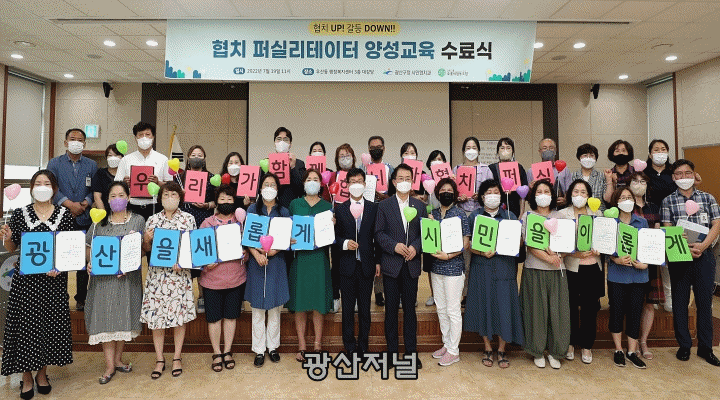 [±¤»êÀú³Î] ±¤ÁÖ ±¤»ê±¸(±¸Ã»Àå ¹Úº´±Ô)°¡ 19ÀÏ ¿ì»êµ¿ ÇàÁ¤º¹Áö¼¾ÅÍ 3Ãþ ´ë°´ç¿¡¼ 2022 ÇùÄ¡ ÆÛ½Ç¸®Å×ÀÌÅÍ(facilitator, Åä·Ð ÁøÇࡤÃËÁøÀÚ) ¾ç¼º±³À° ¼ö·á½ÄÀ» ¿°í, ¸ðµç ±³À° °úÁ¤À» ¸¶¹«¸®Çß´Ù.
