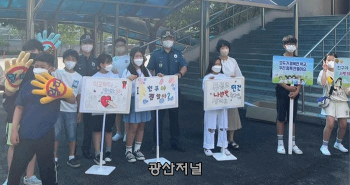 [±¤»êÀú³Î] ±¤ÁÖ ±¤»ê±¸(±¸Ã»Àå ¹Úº´±Ô)´Â 7ÀÏ ¿ÀÀü °í½ÇÃʵîÇб³ ¾Õ¿¡¼ ±¤»ê°æÂû¼, ±¤ÁÖ±¤»ê±¸³ì»ö¾î¸Ó´Ïȸ µî °ü°è±â°ü°ú ÇÔ²² ¾î¸°ÀÌ ±³Åë¾ÈÀü Ä·ÆäÀÎÀ» ½Ç½ÃÇÏ¿´´Ù°í ¹àÇû´Ù.