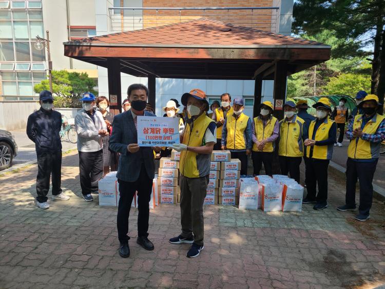 [±¤»êÀú³Î] ±¤»ê±¸ ÷´Ü1µ¿ ÁÖ¹ÎÀÚġȸ(ȸÀå °û»ó¹Î)°¡ Áö³ 17ÀÏ ¾î¸£½ÅµéÀÇ °Ç°À» ±â¿øÇÏ¸ç °ü³» °æ·Î´ç 23°³¼Ò¿¡ »ï°è ´ßÀ» Áö¿øÇß´Ù. |