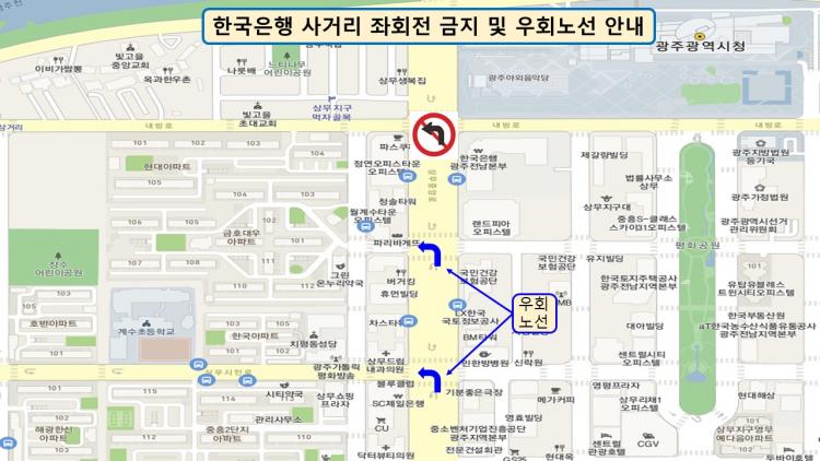 [±¤»êÀú³Î] ¿À´Â 10ÀϺÎÅÍ Çѱ¹ÀºÇà »ç°Å¸®(Çѱ¹ÀºÇà¡æ¼Ò°¢Àå ¹æÇâ)¿Í ÁÖ¿ù±³Â÷·Î(³ó¼º¿ª¡æ¹é¿îÃʱ³ ¹æÇâ) ÁÂȸÀüÀÌ ±ÝÁöµÈ´Ù.