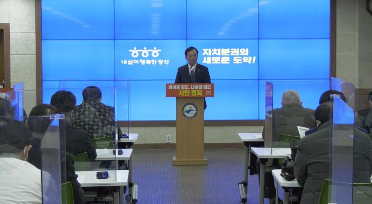 [±¤»êÀú³Î] ±è»ïÈ£ ±¤»ê±¸Ã»ÀåÀÌ ¡°´õ ³ôÀº ¼öÁØÀÇ ÀÚÄ¡ÇàÁ¤À» ¼±µµÇÏ´Â ±¤»ê±¸¸¦ È®¸³Çϵµ·Ï ±¸Á¤ÀÇ ¿Ï¼ºµµ¸¦ ³ôÀ̸ç Äڷγª19 ÀÌÈÄÀÇ º¯È¸¦ ´ëºñÇϰڴ١±°í ¹àÇû´Ù.