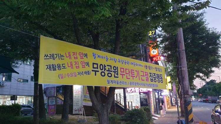 [±¤»êÀú³Î] ¿ù°è¸¶À»°ü¸®¼Ò°¡ Áö³ 5¿ù »ê¿ùÃÊ ¸ðÅüÀÌ 3°÷¿¡ À̾î ÃÖ±Ù ¹«¾ç°ø¿ø ÁÖº¯ 11°÷¿¡¼µµ ¾²·¹±â ¹«´ÜÅõ±â¸¦ ¸·¾Æ³» ÈÁ¦´Ù.