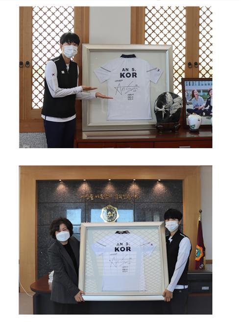 [±¤»êÀú³Î] ±¤ÁÖ¿©ÀÚ´ëÇб³(ÃÑÀå À̼±Àç) 2020µµÄì¿Ã¸²ÇÈ 3°ü¿Õ ¾È»ê ¼±¼ö´Â 18ÀÏ¿¡ µµÄì¿Ã¸²ÇÈ ´ç½Ã Âø¿ëÇß´ø °æ±âº¹¿¡ »çÀÎÀ» ´ã¾Æ ¸ð±³¿¡ ±âÁõÇß´Ù°í ¹àÇû´Ù.