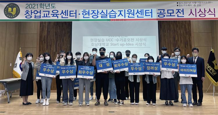 [±¤»êÀú³Î] È£³²´ëÇб³ ÇöÀå½Ç½ÀÁö¿ø¼¾ÅÍ(¼¾ÅÍÀå ±è¼º¼ö)´Â 13ÀÏ ¿ÀÀü ±³³» IT½ºÄù¾î 1Ãþ °´ç¿¡¼ ¡®2021Çг⵵ ÇöÀå½Ç½À UCC ¼ö±â°ø¸ðÀü¡¯ ½Ã»ó½ÄÀ» °³ÃÖÇß´Ù.