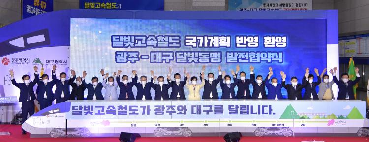 [±¤»êÀú³Î] µ¿¼ÈÇÕÀÇ 20³â ¼÷¿ø»ç¾÷ÀÎ ±¤ÁÖ¿¡¼ ´ë±¸¸¦ ÀÕ´Â ¡®´Þºû³»·úöµµ¡¯ »ç¾÷ÀÌ ¡®Á¦4Â÷ ±¹°¡Ã¶µµ¸Á±¸Ãà°èȹ¡¯¿¡ ¹Ý¿µ‧È®Á¤µÆ´Ù´Â Èñ¼Ò½Ä¿¡ À̿뼷 ±¤ÁÖ½ÃÀåÀÌ ¶Ò½ÉÀ¸·Î °á±¹ ÇØ³Â´Ù´Â Æò°¡´Ù.