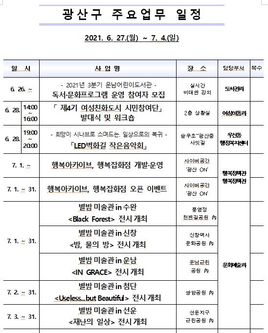 [Á¾ÇÕ] ±¤»ê±¸ ÁÖ¿ä¾÷¹« ÀÏÁ¤(6.27~7.4) |2021. 06.29