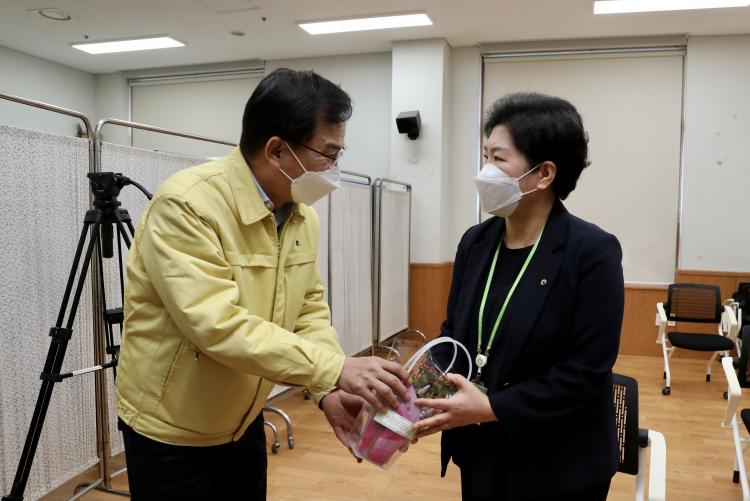 [±¤»êÀú³Î] ±¤»ê±¸ ¿ì»êµ¿ ÈÈѰü±¤´ÜÁö ¾ÈÈ«±Õ ´ëÇ¥°¡, 26ÀÏ ±¤ÁÖº¸ÈÆ¿ä¾ç¿ø¿¡¼ ±¤ÁÖ Ã¹ Äڷγª19 ¹é½Å Á¢Á¾À» ¹Þ´Â 140¸í¿¡°Ô ÀüÇØ´Þ¶ó¸ç ²É ȺÐÀ» ±¤»ê±¸¿¡ ±âºÎÇß´Ù.