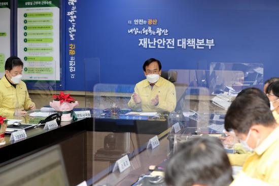 Áö³ 7ÀÏ ±è»ïÈ£ ±¤»ê±¸Ã»ÀåÀÌ, ±¸Ã»¿¡¼ ´ë¼³ °æº¸ »óȲÁ¡°Ë ȸÀǸ¦ ÁÖÀçÇϰí, ºÎ¼º° ÁßÁ¡ °ü¸®¡¤Á¶Ä¡ »çÇ×°ú ÀÎ¸í¡¤Àç»ê ÇÇÇØ ÃÖ¼ÒÈ ´ëºñ ż¼¸¦ Á¡°ËÇß´Ù.