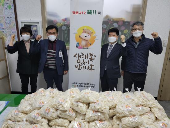 ÀÌö½Â ±¤»ê±¸ ¼ö¿Ïµ¿ÁÖ¹ÎÀÚġȸÀåÀÌ 12¿ù 29ÀÏ µ¹º½ ÀÌ¿ô¿¡°Ô ÀüÇØ´Þ¶ó¸ç 150¸¸ ¿ø »ó´çÀÇ ¶±±¹ ¶± 300kgÀ» ¼ö¿Ïµ¿ ÇàÁ¤º¹Áö¼¾ÅÍ¿¡ ±âºÎÇß´Ù.