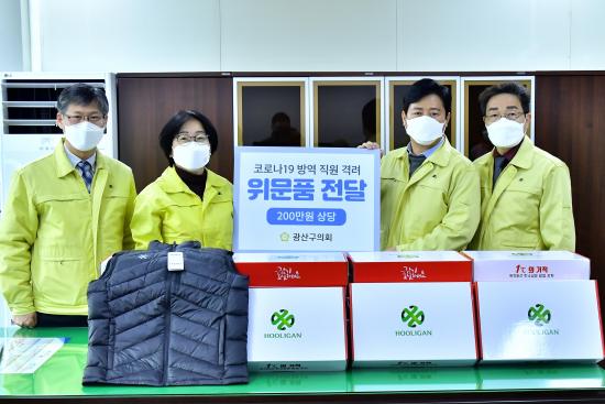 ±¤»ê±¸ÀÇȸ(ÀÇÀå ÀÌ¿µÈÆ)°¡ 12¿ù 30ÀÏ ±¤»ê±¸ Äڷγª 19 ºñ»ó ±Ù¹«ÀÚµéÀ» À§·ÎÇÏ°í °Ý·Á ¹°Ç°À» Àü´ÞÇß´Ù.