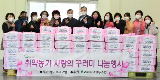 ¼ÛÁ¤³óÇù(Á¶ÇÕÀå ±èÇü´ö)Àº 9ÀÏ °æÁ¦»ç¾÷Àå¿¡¼ Ãë¾à(¼Ò¿Ü)°èÃþ Áö¿øÀ» À§ÇÑ Áö¿ª»ç¶û ³ª´® ³ó»ê¹°²Ù·¯¹Ì Àü´Þ Çà»çÇß´Ù.
