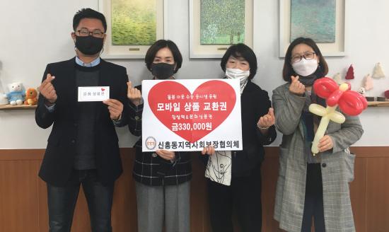 ±¤»ê±¸ ½ÅÈﵿ Áö¿ª»çȸº¸ÀåÇùÀÇü(À§¿øÀå Àå°æ¿Á)°¡ 25ÀÏ µ¿ ÇàÁ¤º¹Áö¼¾ÅÍ¿¡¼ ¼ö´ÉÀ» ¾ÕµÐ µ¹º½ ÀÌ¿ô °¡Á¤ ¼öÇè»ý 11¸íÀÇ ÇÕ°ÝÀ» ±â¿øÇÏ´Â ¼±¹° Àü´Þ½ÄÀ» Çϰí, ÁغñÇÑ ¸ð¹ÙÀÏ Âý½Ò¶± ÄíÆù°ú ¹®È»óǰ±Ç µîÀ» Àü´ÞÇß´Ù.