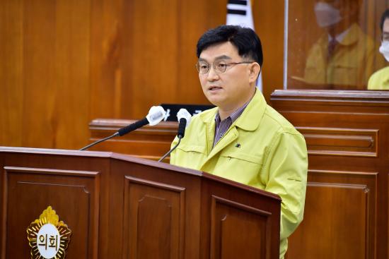 ±è»ïÈ£ ±¤»ê±¸Ã»ÀåÀÌ Áö³ 23ÀÏ ¿¸° ±¤»ê±¸ÀÇȸ Á¦261ȸ Á¤·Êȸ¿¡¼ ½ÃÁ¤¿¬¼³À» Çß´Ù.