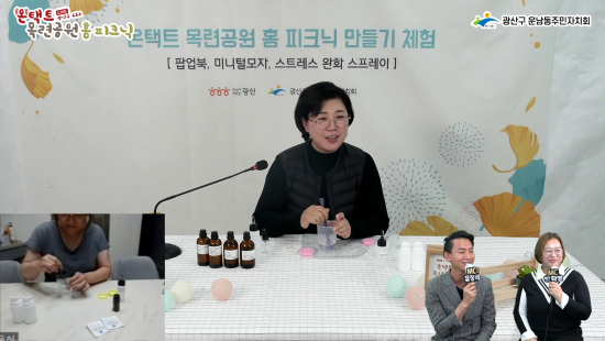±¤»ê±¸ ¿î³²µ¿ÁÖ¹ÎÀÚġȸ(ȸÀå ¾çÇö)°¡ 14ÀÏ Äڷγª ÀÏ»ó½Ã´ë¿¡ Áý¿¡¼ Áñ±â´Â ³ªµéÀÌ ¡®¸ñ·Ã°ø¿ø ÇÇÅ©´Ð¡¯À» ¿Â¶óÀÎ »ýÁß°è ¹æ½ÄÀ¸·Î ÁøÇàÇß´Ù.