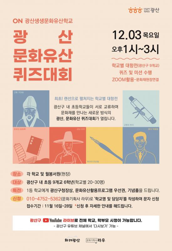 ±¤»ê±¸(±¸Ã»Àå ±è»ïÈ£)°¡ ¡®±¤»ê, ¹®ÈÀ¯»ê ÄûÁî´ëȸ¡¯ Âü°¡ ÃʵîÇб³¸¦ 28ÀϱîÁö ¼±Âø¼ø ¸ðÁýÇÑ´Ù.