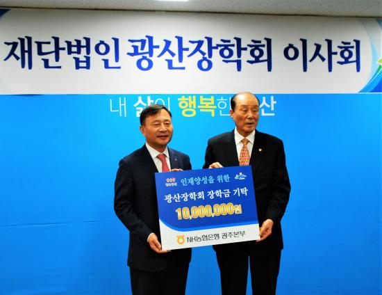 NH³óÇùÀºÇà ±¤ÁÖº»ºÎ(º»ºÎÀå ÃÖ¿µ)´Â Áö³ 3ÀÏ ±¤»êÀåÇÐȸ(ÀÌ»çÀå °¹Ú¿ø) ÀÌ»çȸ¿¡ Âü¼®ÇØ ÀåÇÐ±Ý 1õ¸¸ ¿øÀ» Àü´ÞÇß´Ù.