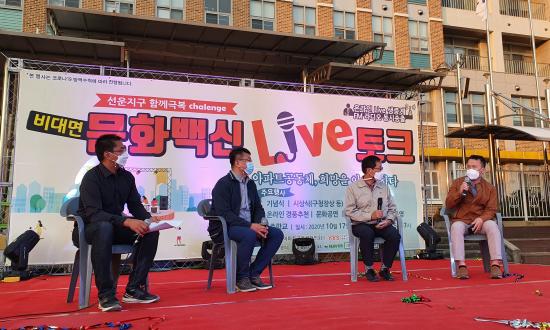 ±¤»ê±¸ ¼±¿îÁö±¸¾ÆÆÄÆ®°øµ¿Ã¼ÇùÀÇȸ(ȸÀå °±¤Ã¶)°¡ 17ÀÏ ¼±¿îÁßÇб³¿¡¼ Äڷγª 19·Î ÁöÄ£ ÁÖ¹ÎÀ» ÀÀ¿øÇÏ´Â ¹®È¿Í ¼ÒÅëÀÇ Àå ¡®¼±¿îÁö±¸ ÇÔ²² ±Øº¹-¹®È¹é½Å ¶óÀ̺ê ÅäÅ©ÄܼƮ¡¯¸¦ ºñ´ë¸é ¹æ½ÄÀ¸·Î ÁøÇàÇß´Ù.