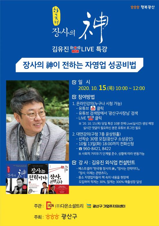 ±¤»ê±¸(±¸Ã»Àå ±è»ïÈ£)°¡ 15ÀÏ ±¸Ã»¿¡¼ °³ÃÖ ¿¹Á¤ÀÎ ±èÀ¯Áø ¿Ü½Ä¾÷ ÄÁ¼³ÅÏÆ®ÀÇ Æ¯º°°¿¬ ¡®Àå»çÀÇ ãê(½Å)ÀÌ ÀüÇÏ´Â ÀÚ¿µ¾÷ ¼º°øºñ¹ý¡¯ÀÇ Âü¼®ÀÚ¸¦ ¸ðÁýÇÑ´Ù.