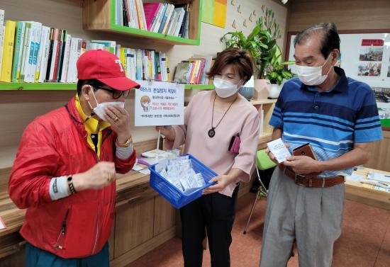 ±¤»ê±¸ ¼ÛÁ¤2µ¿ Áö¿ª»çȸº¸ÀåÇùÀÇü(À§¿øÀå ±èÁ¾¼±)Àº 24ÀϺÎÅÍ µ¿ÇàÁ¤º¹Áö¼¾ÅÍ¿Í ±¤ÁÖ¼ÛÁ¤¿ª µî À¯µ¿Àα¸°¡ ¸¹Àº °÷¿¡¼ Áֹε鿡°Ô ¸¶½ºÅ© ºÐ½Ç¹æÁö ¸ñ°ÉÀ̸¦ ³ª´²ÁÖ°í ÀÖ´Ù.