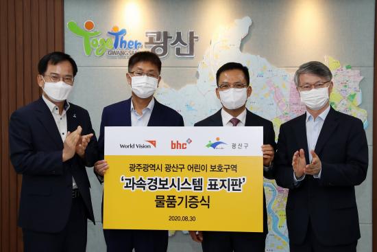 30ÀÏ Ä¡Å² ÇÁ·£Â÷ÀÌÁî BHC°¡ ¾î¸°À̺¸È£±¸¿ª ³» ±³Åë¾ÈÀü °È¸¦ À§ÇØ 4,900¸¸ ¿ø »ó´çÀÇ °ú¼Ó°æº¸½Ã½ºÅÛ Ç¥ÁöÆÇ 7°³¸¦ ±¤»ê±¸¿¡ ±âÁõÇß´Ù.