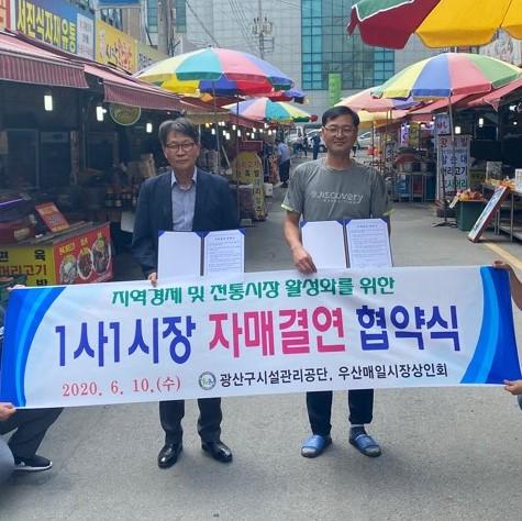 ±¤»ê±¸½Ã¼³°ü¸®°ø´Ü(ÀÌ»çÀå ±èÀç¼®)Àº Áö³ 10ÀÏ ¡®Äڷγª19¡¯·Î ¾î·Á¿òÀ» °Þ°í ÀÖ´Â Áö¿ª°æÁ¦ ¹× ÀüÅë½ÃÀå Ȱ¼ºÈ¸¦ À§ÇØ ¿ì»ê¸ÅÀϽÃÀå(»óÀÎȸÀå ±èÁ¤¿ø)°ú ÀڸŰῬ Çù¾àÀ» ü°áÇß´Ù°í ¹àÇû´Ù.
