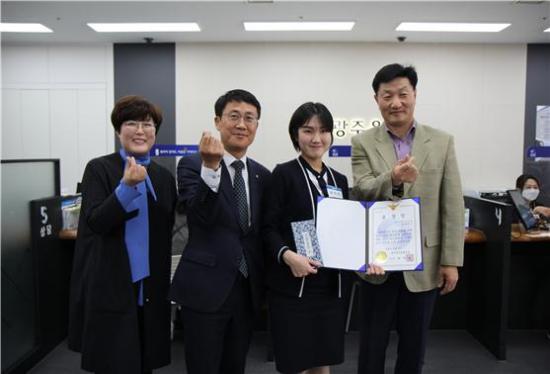 ±¤»ê°æÂûÀº Áö³´Þ 28ÀÏ ±¤ÁÖÀºÇà ¼ö¿ÏÁöÁ¡À» ¹æ¹®ÇØ º¸À̽ºÇÇ½Ì ÇÇÇØ¸¦ ¿¹¹æ¿¡ ±â¿©ÇÑ ÀºÇàÁ÷¿ø¿¡°Ô °¨»çÀÇ ¸¶À½°ú ÇÔ²² ǥâÀåÀ» ¼ö¿©Çß´Ù.