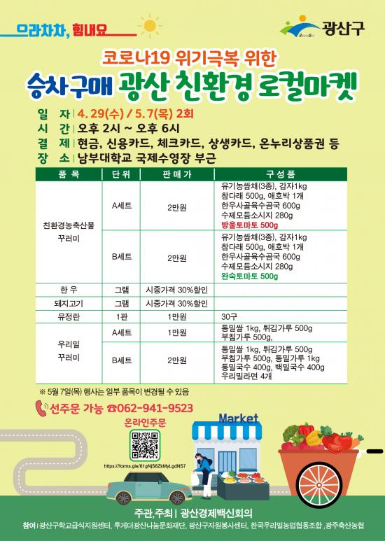 Äڷγª19 À§±â ±Øº¹ ±¤»ê±¸ ¹Î°ü»êÇÐ ´ëÇ¥ÀÚ ÇùÀÇüÀÎ ±¤»ê°æÁ¦¹é½ÅȸÀǰ¡, ÀÌ´Þ 29Àϰú ´ÙÀ½´Þ 7ÀÏ ¿ÀÈÄ2~6½Ã ³²ºÎ´ëÇб³¿¡¼ Â÷¸¦ Ÿ°í ¹°°ÇÀ» »ç´Â ½ÂÂ÷±¸¸Å ¹æ½ÄÀÇ ¡®Ä£È¯°æ ·ÎÄø¶ÄÏ Æ¯º° ±âȹÀü¡¯À» ½Ç½ÃÇÑ´Ù.