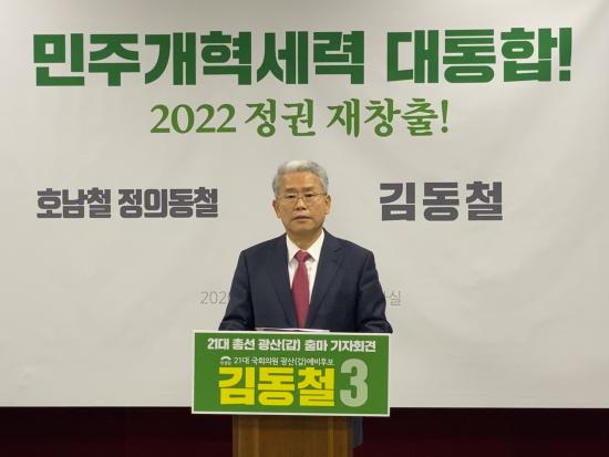 ±èµ¿Ã¶ ¹Î»ý´ç ±¹È¸ÀÇ¿øÀÌ ±¤ÁÖ½ÃÀÇȸ ºê¸®ÇÎ ·ë¿¡¼ ±âÀÚȸ°ßÀ» °®°í 4.15 ÃѼ± Ã⸶ ¼±¾ðÀ» Çß´Ù.