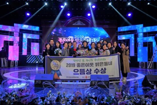 20ÀÏ ±¤»ê±¸ ¿ì»êµ¿ ÁÖ¹ÎÀÚġȸ(ȸÀå ÃÖ¿µÅÂ)°¡, ±¤ÁÖ±¤¿ª½Ã¿Í Àü¶ó³²µµ, ±¤ÁÖ¹æ¼Û¹®ÈÀç´Ü µîÀÌ °øµ¿ÁÖ°üÇÏ°í ±è´ëÁßÄÁº¥¼Ç¼¾ÅÍ¿¡¼ ¿¸° ¡®2019 ÁÁÀºÀÌ¿ô ¹àÀºµ¿³×¡¯ ½Ã»ó½Ä¿¡¼ ¹àÀºµ¿³× À¸¶ä»óÀ» ¼ö»óÇß´Ù.